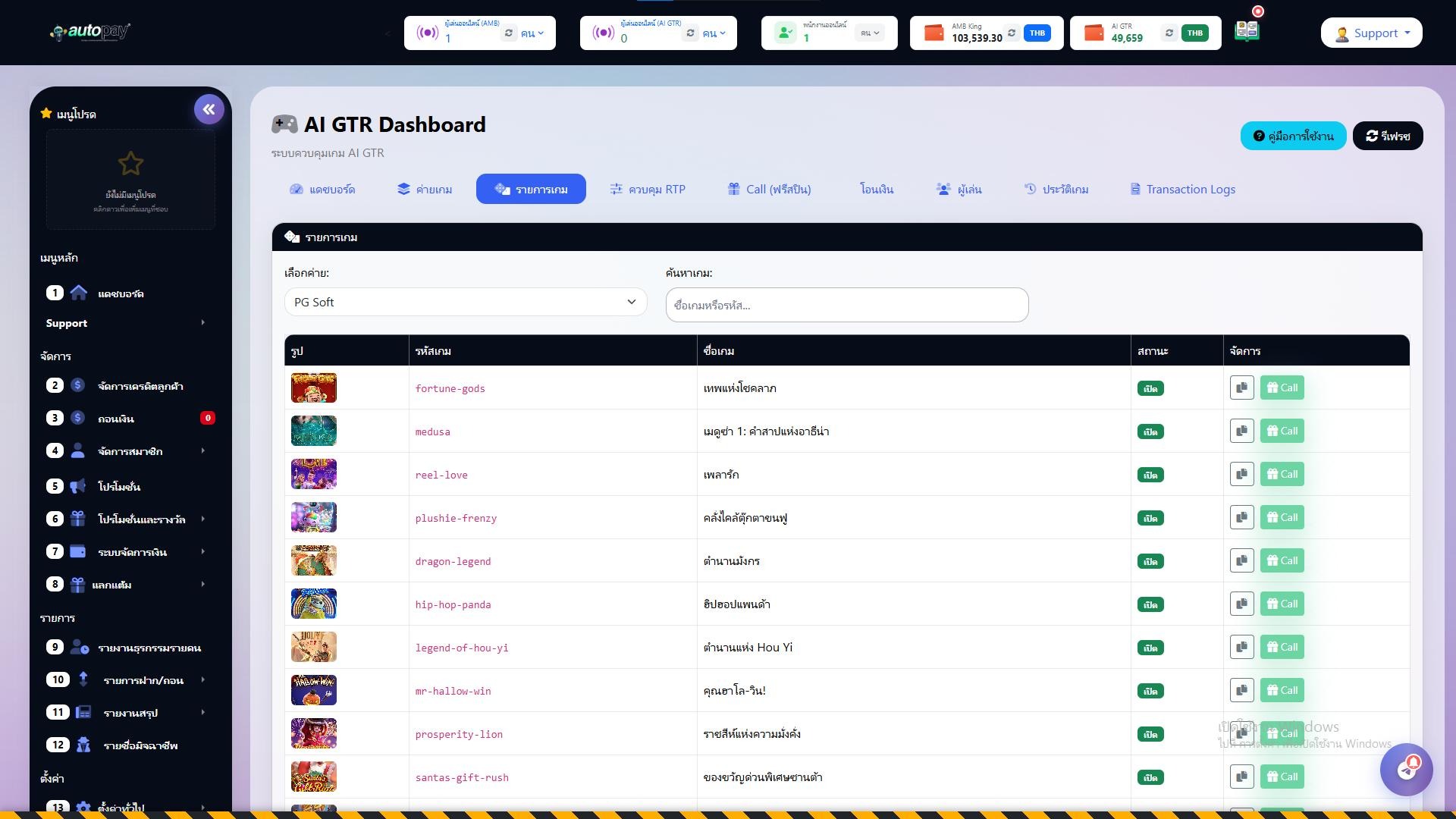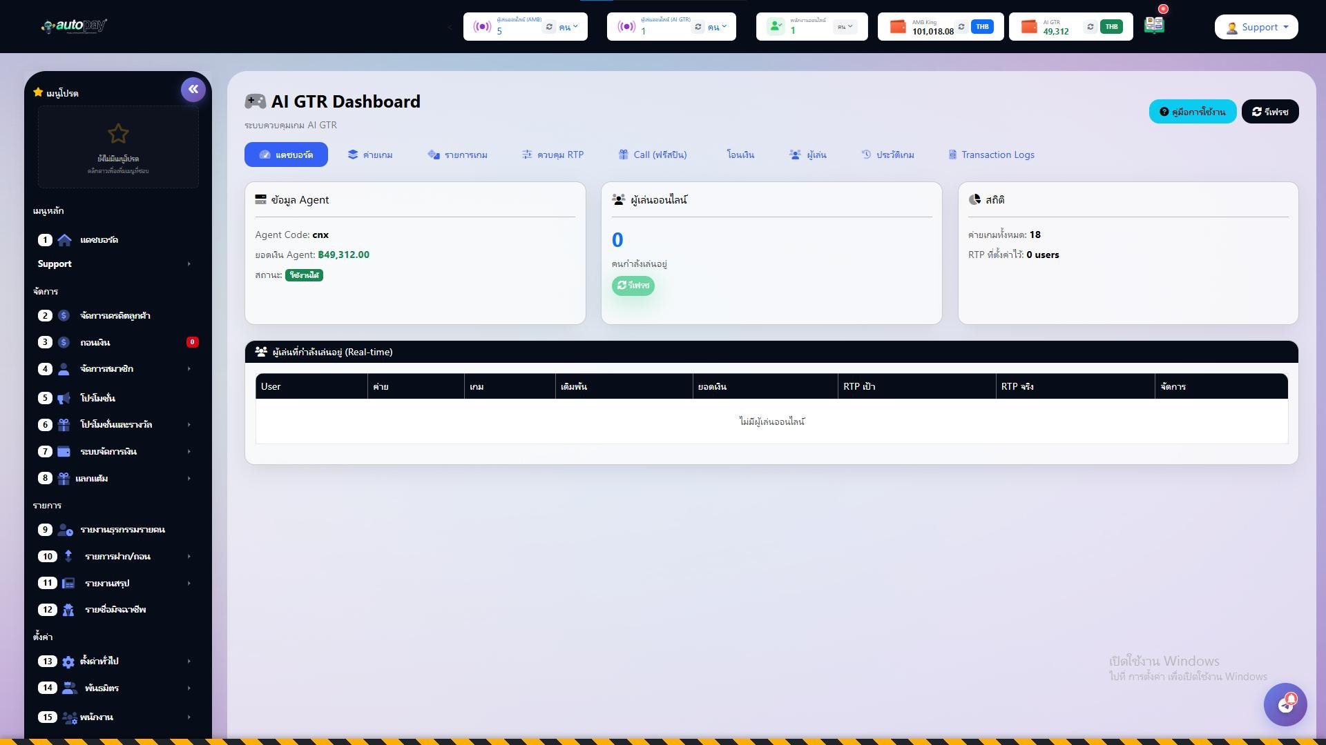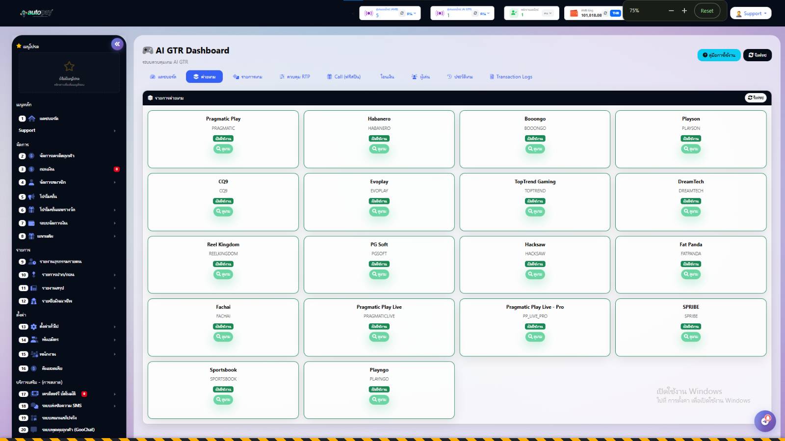 AI GTR (AI Game Technology & Return) คือระบบควบคุมเกมขั้นสูงที่ช่วยให้ Admin สามารถ: