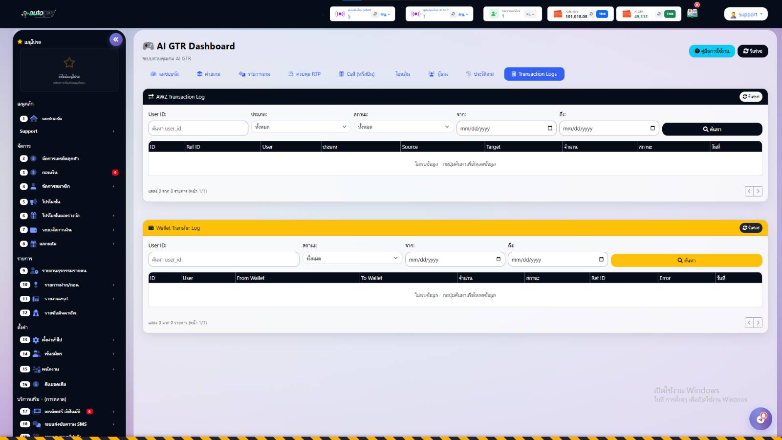 คำเตือน: ฟังก์ชันนี้จะรีเซ็ตยอดเงินในระบบ AI GTR กลับเป็น 0